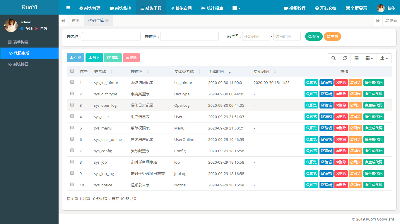 一直想做一款后台管理系统,看了很多优秀的开源项目但是发现没有合适的。于是利用空闲休息时间开始自己写了一套后台系统。如此有了若依。她可以用于所有的Web应用程序,如网站管理后台,网站会员中心,CMS,CRM,OA。所有前端后台代码封装过后十分精简易上手,出错概率低。同时支持移动客户端访问。系统会陆续更新一些实用功能。