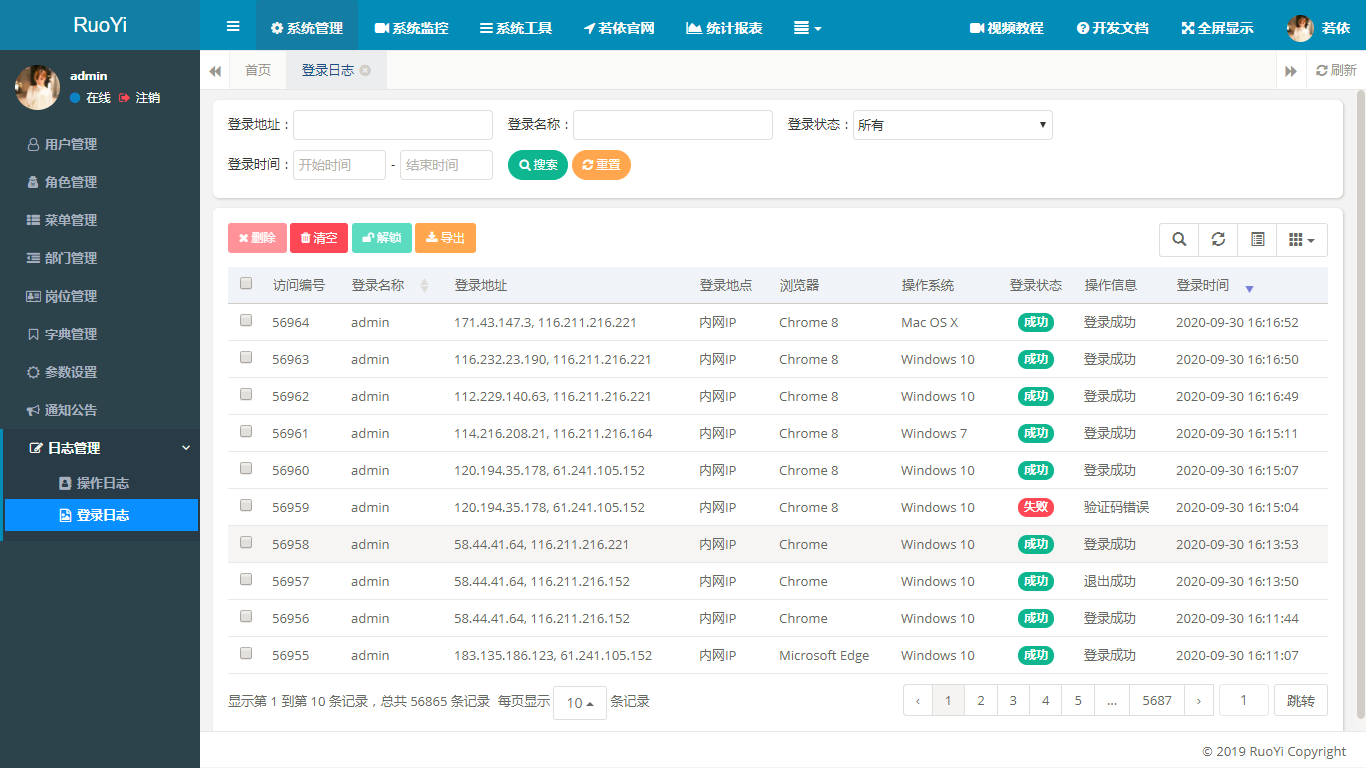 - 登录日志:系统登录日志记录查询包含登录异常。