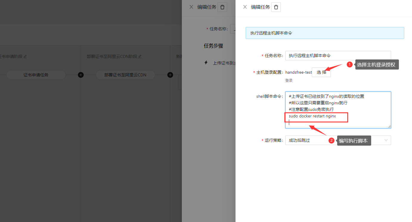 本示例演示从创建证书申请任务到自动部署证书全流程