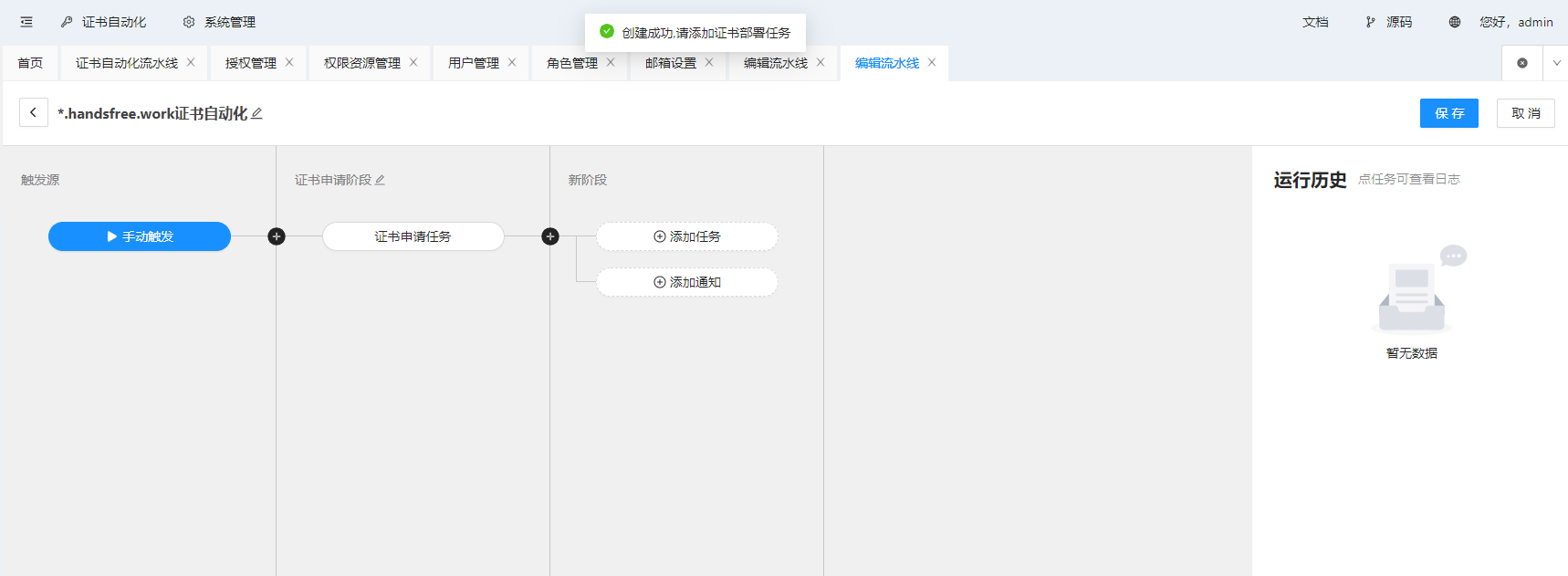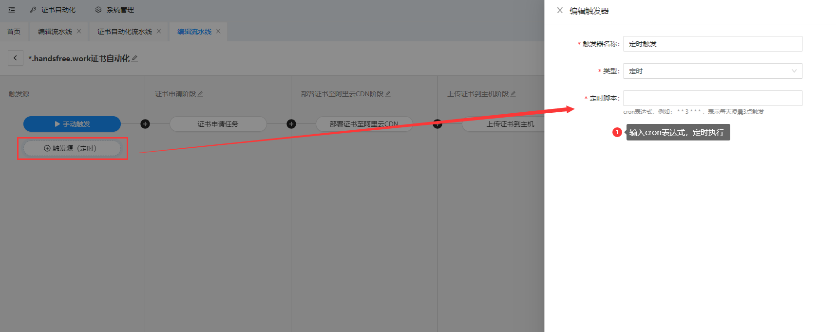 1. 创建证书申请部署流水线
