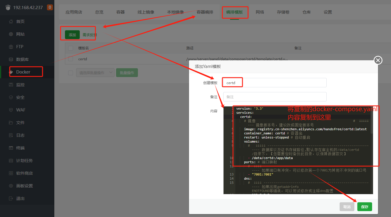 打开docker-compose.yaml, https://gitee.com/certd/certd/raw/v2/docker/run/docker-compose.yaml